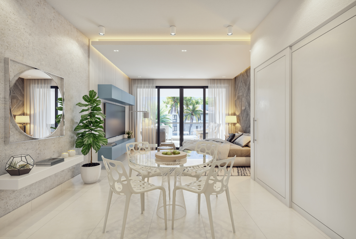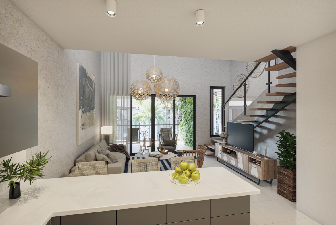 TH OASIS is an exclusive project with a modern design, created to offer a new lifestyle. The spaces provide comfort and tranquility, with nature presentations on all the surrounding area. Located in the privileged area of Playa Nueva Romana, this exceptional project is just a few steps from the beach and a short distance from the main tourist attractions.