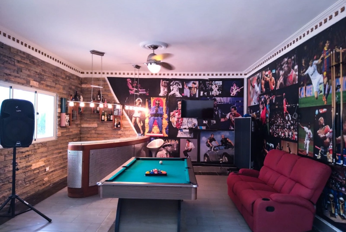 Located in the prestigious and secure community of Metro Country Club, this elegant residence offers exceptional comfort, space, and style in every detail. Designed with large windows that fill the interiors with natural light, the home features a thoughtfully arranged interiors that promote entertaiment. Key highlights include a spacious living room, a cozy family room, and a sophisticated sports bar — ideal for hosting guests or enjoying quality moments. Outdoors, the property boasts a generously sized swimming pool with an integrated jacuzzi, providing the perfect setting for leisure, recreation, and relaxation.